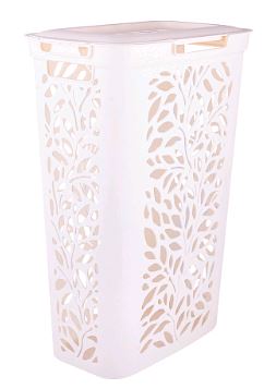 Корзина д/белья 40л с кр. Leaves молочный ПБ49424